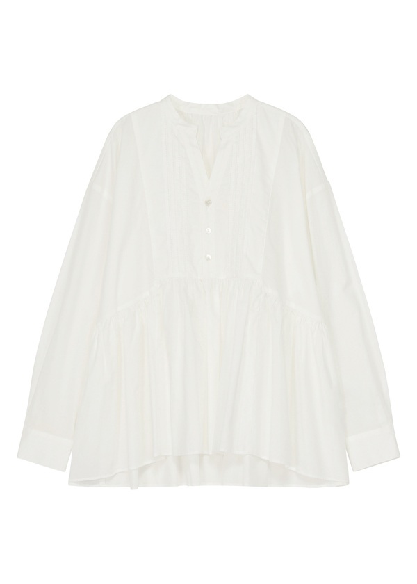 -フロントのビブヨーク部分に繊細なピンタックを施し、上品な表情を演出