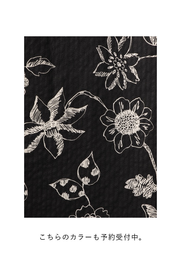 -手描き風の繊細なフラワーモチーフを全面にプリント