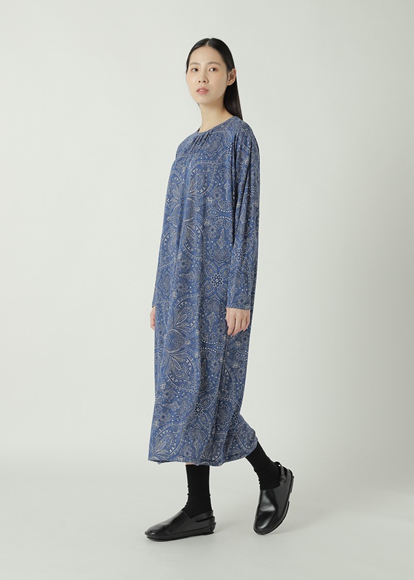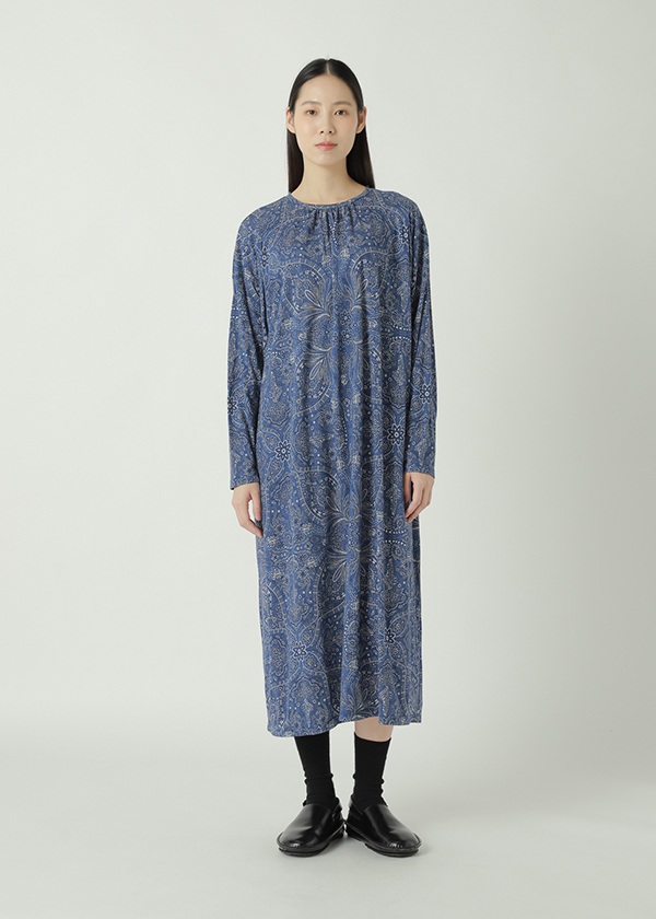 -シルクスカーフのような上品な光沢感と落ち感を持つセルロース綿天竺素材にプリント