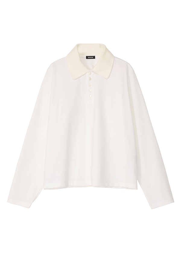 -編み立てポロ衿を縫い付けた、トレンド感のあるデザイン