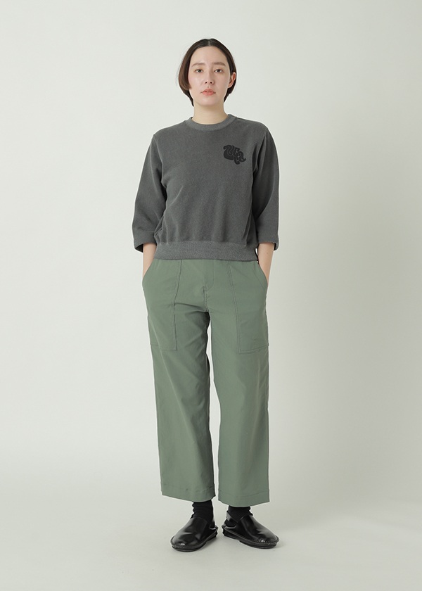 -ベーシックなスウェット素材に色落ち加工を施し、ガーメントダイ風のヴィンテージ感を演出