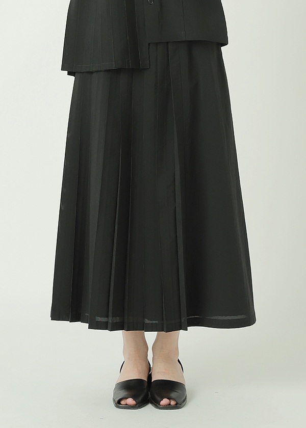 -プリーツが特徴的なアシンメトリーデザインのスカート。